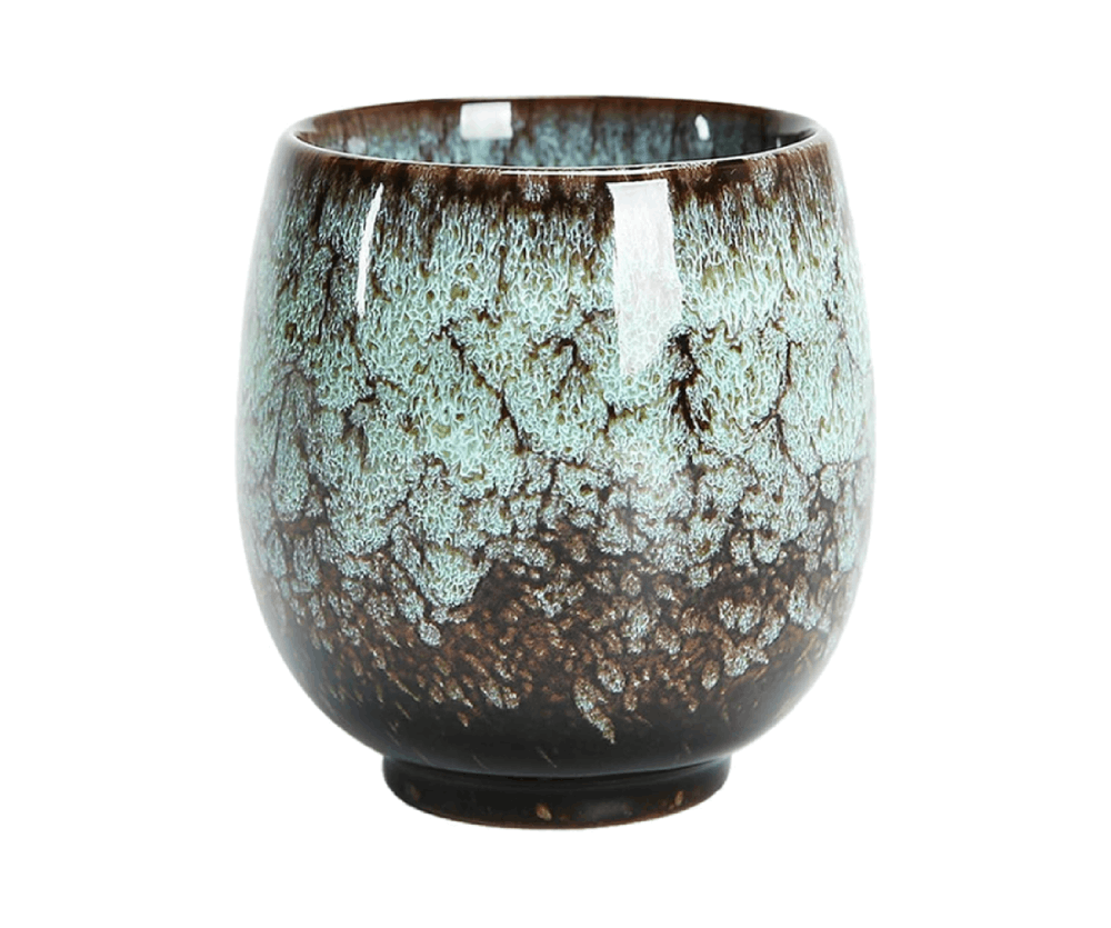 Breng warmte en karakter in je koffiecorner met dit turquoise-bruin koffiekopje van 120 ml. Elk kopje is uniek dankzij het reactieve glazuur.