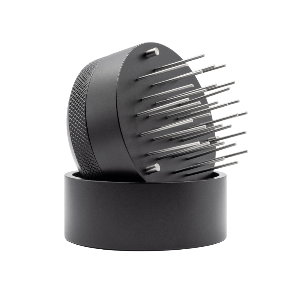 Deze tool maakt gebruik van maar liefst 21 roestvrijstalen naalden die flexibel door het koffiedik bewegen zonder het te verdichten. Hierdoor wordt de luchtigheid behouden en de extractie verbeterd. De verstelbare diepte-instelling maakt het mogelijk om de tool precies af te stemmen op jouw portafilter, of je nu werkt met een 51mm, 53mm of 58mm formaat.